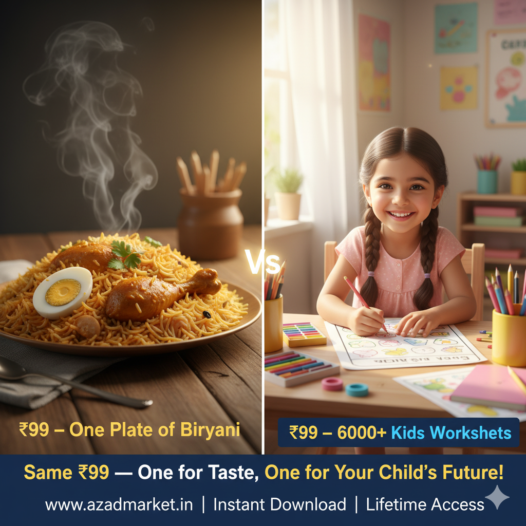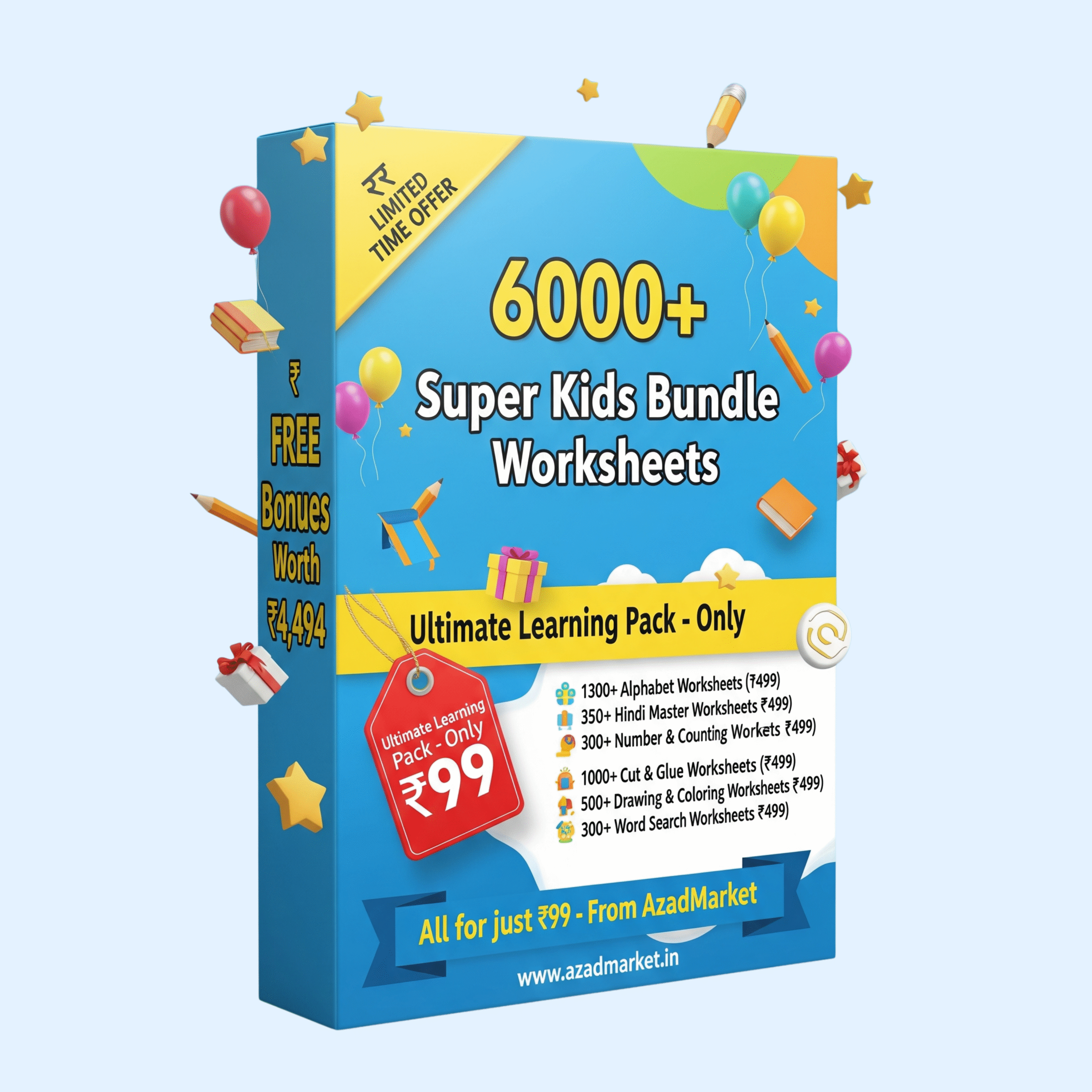 Unlock 6000+ Premium Kids Worksheets (2000+ Super Kids + 4300 Bonus in Alphabet, Hindi, Numbers, Crafts, Coloring & Word Search) – Worth ₹4,494, Yours Today for — Just ₹99 with Lifetime Access!